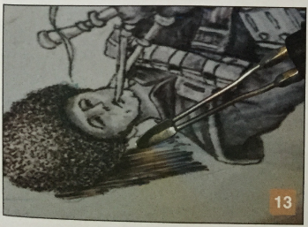 12 & 13. For darker textured areas, use the same technique as above but burn darker.