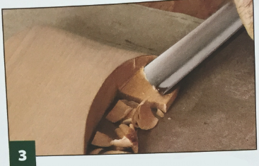 Round the corners of the V groove. Use a 3/16™ (5mm) #5 gouge upside down. Cut with the grain. Shape one side of the groove and then turn the molding around to carve the other side. There is no need to sand; the rope looks more natural with a few light facets, but make sure all of the cuts are clean and finished. Erase the pencil marks.